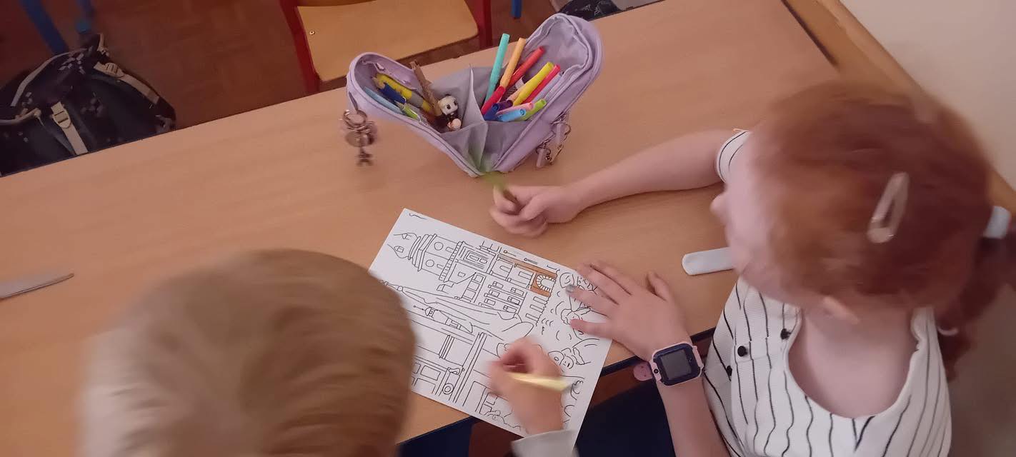 Na zdjęciach widać obraz Jana Matejki z 1891 roku "Konstytucja Trzeciego Maja 1791 roku" - oryginał znajduje się w zbiorach Zamku Królewskiego w Warszawie oraz uczniów podczas pracy nad projektem edukacyjnym "Postacie Konstytucji Trzeciego Maja".
