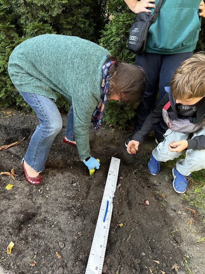 Jeszcze w czerwcu przygotowaliśmy miejsce i przekopaliśmy ziemię pod nowe cebulki. We wrześniu zorganizowaliśmy zbiórkę cebulek tulipanów, która przerosła nasze najśmielsze oczekiwania. W październiku, z pomocą uczniów - w ramach szkolnego wolontariatu - posadziliśmy cebulki. Już pod koniec marca, w naszym ogródku kwiatowym, wzrosły pierwsze tulipany. W kwietniu mogliśmy podziwiać kwiaty, które zachwycały feerią kolorów i różnorodnymi kształtami: pojedyncze, podwójne, strzępiaste, liliokształtne i papuzie.