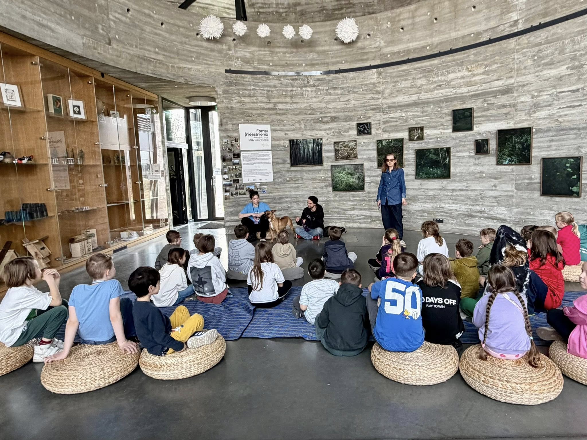 Dziś, w ramach projektu edukacyjnego "Dzieci dla Zwierząt", uczniowie z klas 1b i 3b wzięli udział w "Spotkaniu z wolontariuszem i psem z Palucha" w Pawilonie Edukacyjnym Kamień.